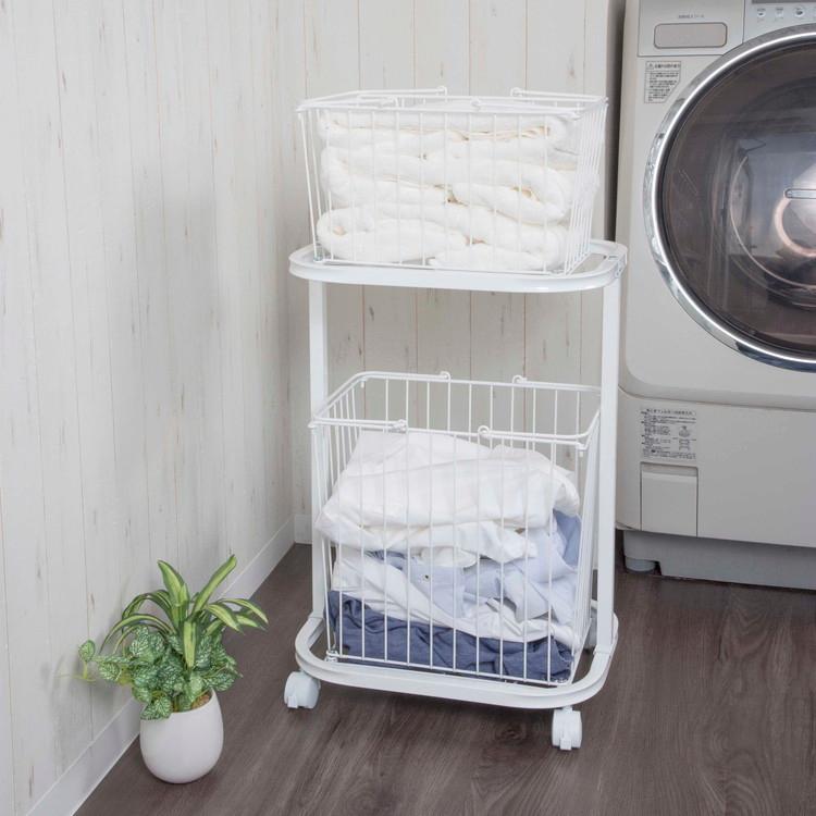 多機能ランドリーラック 棚板、カゴ2つ付き ホワイト 多機能ランドリーラック 棚板、カゴ2つ付き ホワイト Amazon